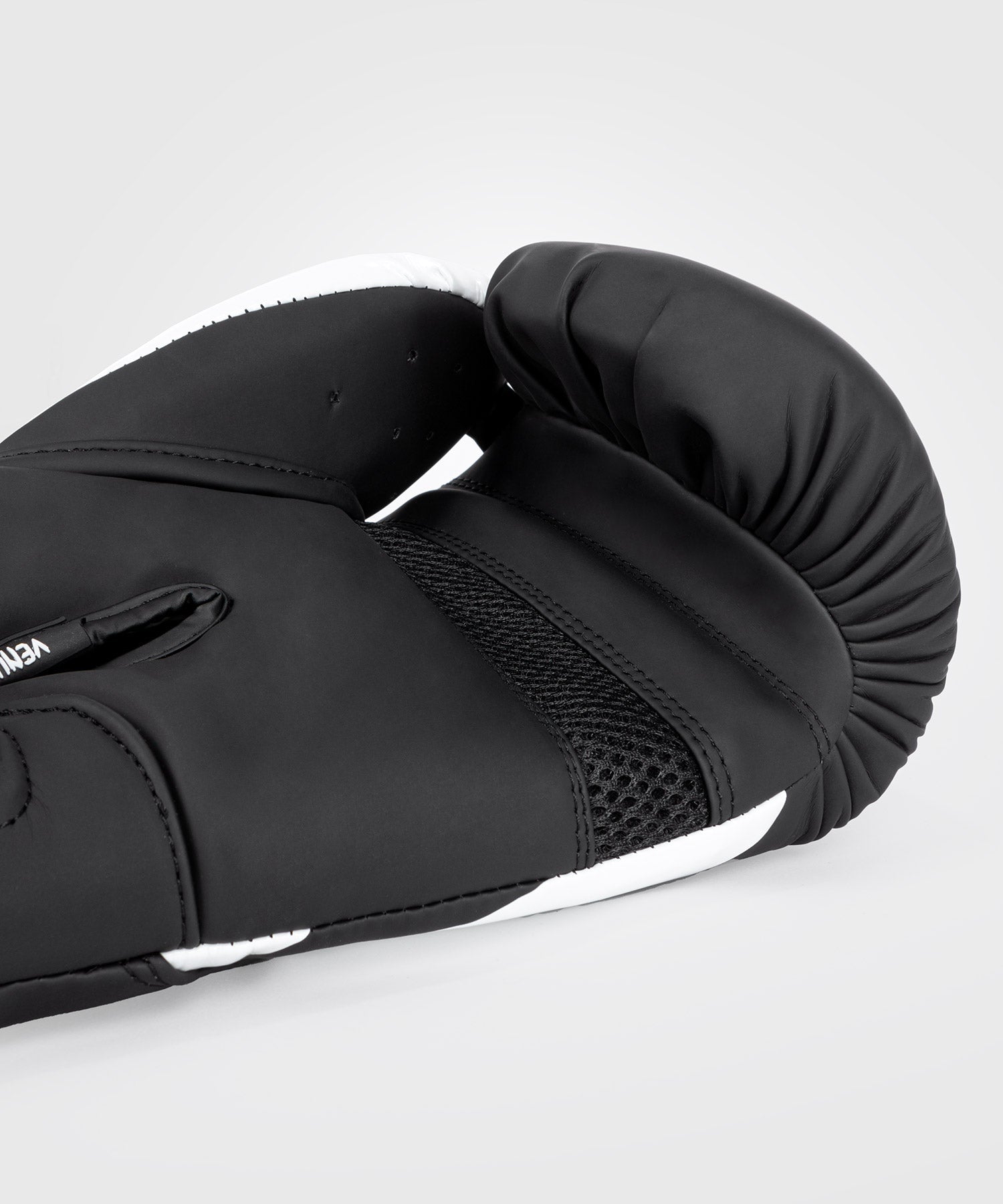 Het ontwerp van de handschoen speelt met het Venum slangenkop logo in zwart en wit.
