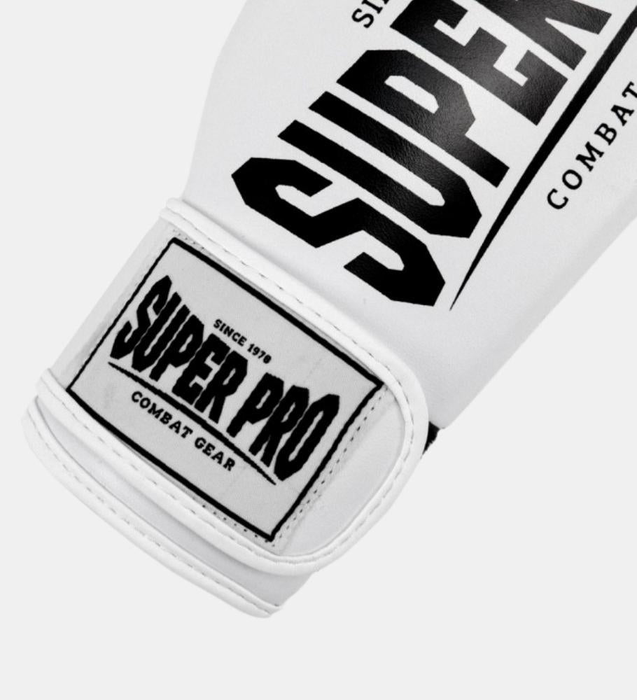(Kick)bokshandschoenen van Super Pro, gemaakt van kunstleer. De handschoenen hebben een padding die bestaat uit één laag. De handschoenen hebben een goede klittenband sluiting voor extra bescherming van de polsen. De handschoenen zijn beschikbaar in 8 t/m 16 oz.